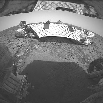 探測器成功從降落架的三米長的斜坡落道火星紅色的泥土上。專家一般認為這是這次任務(wù)其中最危險的一步。