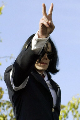 杰克遜在抵達(dá)加州圣瑪麗亞法庭時受到一群手持歡迎標(biāo)語牌和支持條幅的歌迷的歡迎。當(dāng)杰克遜從汽車?yán)镒叱鰜頃r,等候在那里的他的一些歌迷哭了起來,并唱起了歌,一些人揮動手中的聲稱“杰克遜是無辜的”支持標(biāo)語。
