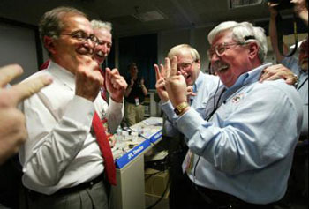 組圖:美國(guó)科學(xué)家慶賀“機(jī)遇”號(hào)成功登陸火星