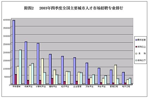 從專業(yè)供求情況看,教育、外語、金融、廣告、財(cái)會(huì)、管理工程等專業(yè)供大于求的態(tài)勢(shì)比較明顯,職位需求比超過1:3;而企業(yè)管理專業(yè)出現(xiàn)了供不應(yīng)求的情況,求職形勢(shì)比較樂觀。