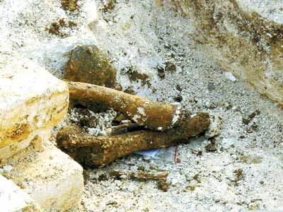 昨天的開棺工作從上午開始,由于墓室中滲水嚴(yán)重,工作進(jìn)展緩慢。中午時(shí)分,女主人棺槨被打開,工作人員發(fā)現(xiàn),該女子頭朝西北、腳向東南正對(duì)墓室門,顱骨和頭發(fā)保存完好,身體其他部分炭化嚴(yán)重。墓室中發(fā)現(xiàn)兩把梳子,一為玉質(zhì),一為木質(zhì);一根銀簪和一根玉簪;幾根20厘米左右的長釘;大量黑色珠子;還有一些巴掌大的絲物碎片、兩個(gè)飾品盒(疑為漆器)、一個(gè)鐵制蠟燭臺(tái)等物?脊湃藛T還發(fā)現(xiàn)了一些墓穴女主人的骨骼。目前女主人去世時(shí)的年齡和死因不明。