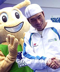 香港歌星許志安,二月八日以“渣打馬拉松2004”形象大使身份參加馬拉松賽。 作者:錢(qián)興強(qiáng)