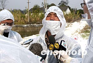 中外十四名記者,十二日深入中國內(nèi)地首發(fā)禽流感疫點--隆安縣丁當(dāng)電灌站采訪。中新社記者:宋吉河