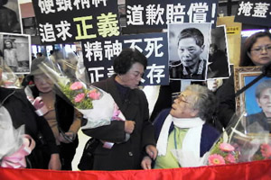 中新網(wǎng)2月12日電 前往日本東京高院聆聽判決的3名臺(tái)灣地區(qū)慰安婦11日下午返回臺(tái)灣,她們對(duì)于日本東京高院判決她們敗訴很不滿,并悲憤的說,她們的官司一定要打到底。