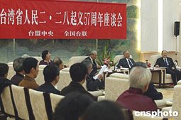 中新社北京二月十九日電 紀(jì)念臺灣省人民“二二八”起義五十七周年座談會今天在北京舉行,全國臺聯(lián)研究室副主任楊毅周發(fā)言說,我們紀(jì)念“二二八事件”是要撫平歷史的創(chuàng)傷,撫慰歷史的悲情;是要增進臺灣社會的和諧,消弭兩岸的隔閡,結(jié)束兩岸的對抗與對立;是要增進兩岸同胞之愛,促進兩岸的和平與團結(jié)。
