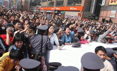臺灣人氣小天后蕭亞軒昨(22)日亮相成都宣傳某彩妝品牌時,引發(fā)歌迷騷亂。上萬名瘋狂的歌迷在蕭亞軒出現(xiàn)在春熙路步行街后,沖破300多名保安和警察組成的人墻,將現(xiàn)場的記者席沖得七零八落,蕭亞軒嚇得歌未唱完就被經(jīng)紀人攔腰抱出包圍圈匆匆離去。雖然現(xiàn)場負責人及時中止了活動,最終仍有一名男歌迷因現(xiàn)場太亂被擠倒在地,好幾名女生的鞋子也被擠丟在了現(xiàn)場。