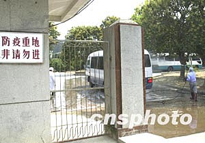 珠海畜禽加工廠為進入的汽車嚴格消毒。澳門特區(qū)民政總署和珠海出入境檢驗檢疫局一日在珠海舉行會議,就恢復因禽流感而中斷的活雞輸入問題進行協(xié)商并達成共識,雙方?jīng)Q定報國家有關部門批準后,從三月五日起同步恢復活雞、冰鮮雞、和凍雞的供應。圖為為澳門進行活雞加工的珠?铺┯邢薰拘笄菔称窂S嚴格管理,為每一輛進入廠區(qū)的車輛進行嚴格的消毒。作者:李剛