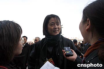今天的倪萍穿著一身黑衣,低著頭步履匆匆前行,她還不時(shí)警惕地向左右看看,企圖躲避記者聚集的地方,眾多記者的目光已被一旁的楊瀾吸引過(guò)去,還沒(méi)注意到她。但就當(dāng)她快要走到大會(huì)堂前的臺(tái)階時(shí),被幾個(gè)熟識(shí)的記者攔住了去路。