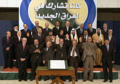 在8日的儀式舉行之前,伊拉克管委會(huì)舉手表決,通過了臨時(shí)憲法。
