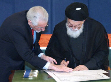 這個(gè)儀式原定上周五(5日)舉行,但伊拉克什葉派穆斯林最高精神領(lǐng)袖提出反對,儀式不得不臨時(shí)取消。就在代表們星期一(3月8日)匯聚在巴格達(dá)的會(huì)議中心參加簽字儀式之際,巴格達(dá)中部發(fā)生了一系列大爆炸。