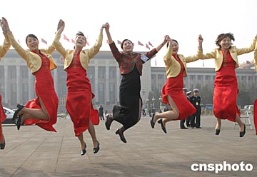 來自新疆的“高空王子”阿迪力表示,他要馬上坐飛機(jī)回去,為民間高空走繩藝術(shù)——“達(dá)瓦孜”籌辦一個(gè)學(xué)校,培養(yǎng)接班人。談及這次盛會(huì),這位人大代表連說了三個(gè)高興——為“私產(chǎn)入憲”而高興;為親民、愛民、護(hù)民的領(lǐng)導(dǎo)集體而高興,為新的奮斗目標(biāo)而高興;接著又連說了三個(gè)好——好班子、好目標(biāo)、好盼頭!