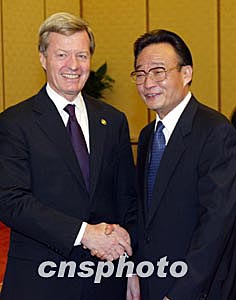 在會見美國參議員鮑克斯時,吳邦國說,中美關系總體發(fā)展良好,兩國領導人保持著密切對話與交往。雙方在經(jīng)貿(mào)、反恐、朝核等重要領域進行了有效的磋商、協(xié)調(diào)與合作。這符合中美兩國和兩國人民的根本利益,也有利于世界的和平、穩(wěn)定與發(fā)展。