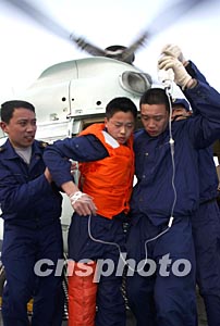 中國(guó)海軍在三月十六日的中法聯(lián)合軍事演習(xí)中成功救助“傷員”。中新社記者:宋吉河