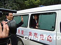 三月十八日,十支總數(shù)為三十人的湖北防治艾滋病專家隊,分赴該省二十一個地區(qū)開展為期一年的巡回醫(yī)療。圖為湖北官員向?qū)<业绖e。作者:艾啟平