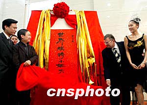 第十六屆世界模特小姐大賽組委會(huì)三月十八日在北京宣布,創(chuàng)辦于土耳其、已有十六年歷史的世界模特小姐大賽將于四月至五月在中國舉行。圖為中國首次選派的選手、上屆冠軍閻巍(右)及嘉賓出席揭幕儀式。中新社記者:鄭萍萍