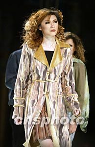 2004年—2005年秋冬流行趨勢(shì)主導(dǎo)品牌“威鵬”牛仔裝發(fā)布會(huì)三月三十日在北京國際時(shí)裝周亮相,模特展示面料講究、款式新穎的系列牛仔裝。中新社記者:毛建軍