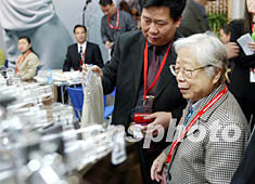 已故中共中央總書記胡耀邦的夫人李昭,四月五日來到北京國際展覽中心,觀看于當(dāng)日開始的中國國際服裝服飾博覽會女裝展。中新社記者:毛建軍