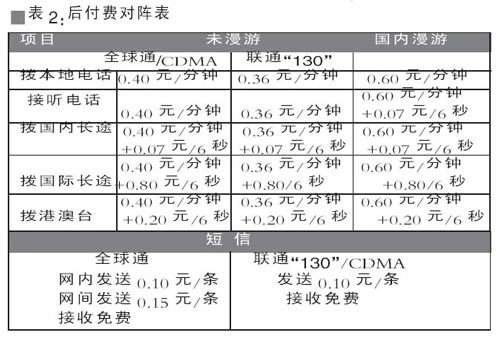 分國內(nèi)漫游和未漫游兩種收費(fèi)標(biāo)準(zhǔn),具體資費(fèi)標(biāo)準(zhǔn)見表2。