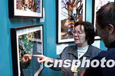 在北京植物園內(nèi)展出的日本駐華大使夫人阿南史代的“京華名樹”個人攝影展,吸引了不少參觀者。四月七日,大使夫人阿南史代在現(xiàn)場親自為參觀者講解當(dāng)時拍攝照片時的情景。中新社記者:盛佳鵬
