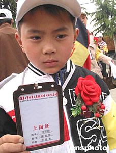 四月十日,南京火瓦巷小學(xué)生洪旻揚(yáng)與其他百名志愿者在南京大屠殺遇難同胞紀(jì)念館宣誓上崗,成為這里的一百一十八志愿者之一。南京大屠殺遇難同胞紀(jì)念館自三月一日免費(fèi)開(kāi)放以來(lái),接待人數(shù)比去年同期增加十倍,因此不得不向社會(huì)招募志愿者。作者:丁東升
