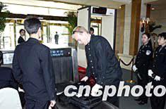 四月十三日上午,美國副總統(tǒng)切尼訪華將下榻的北京國際俱樂部飯店開始對進(jìn)入人員實(shí)施安檢,以確保安全。中新社記者:毛建軍