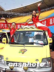北京春季汽車大型展銷會四月十四日在工人體育場拉開帷幕,十萬元左右的新款國產(chǎn)經(jīng)濟型轎車引人矚目。中新社記者:張勤