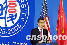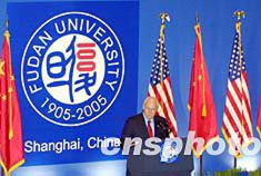 二十年前,時任美國總統(tǒng)的里根在復(fù)旦大學(xué)講壇上發(fā)表演講,中美正走向發(fā)展;滄海桑田,經(jīng)歷了風(fēng)風(fēng)雨雨的中美關(guān)系獲得長足發(fā)展,并帶給兩國人民實際利益。今天,在這所中國著名高等學(xué)府將迎來百年華誕之際,來訪的美國副總統(tǒng)切尼亦于此舉行演講。