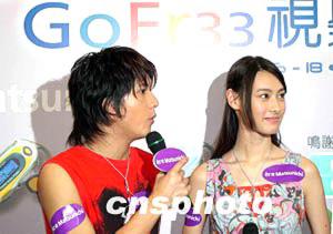 4月17日,香港樂(lè)壇Boy’z成員關(guān)智斌及新人Isabella(右)擔(dān)任松日公司MP3代言人。作者:譚達(dá)明