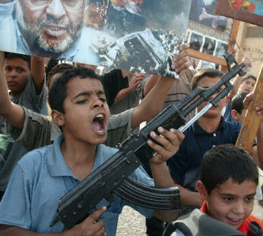 3月22日,近萬名哈馬斯的支持者和巴民眾涌上加沙街頭,為遭以軍暗殺的“哈馬斯”精神領(lǐng)袖亞辛舉行葬禮,更抗議以色列不光彩的暗殺。28天后,巴勒斯坦各武裝派別的支持者們又來給蘭提斯送行。當(dāng)他們擁著蘭提斯的尸體,鳴著槍從加沙師法醫(yī)院走向阿爾納斯郊區(qū),他們心中充斥的是憂傷?是憤怒?是恐懼?還是茫然?