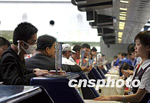 北京市新確診一例SARS疑似患者后,四月二十三日,北京機(jī)場(chǎng)的旅客流量不減,偶爾可見少量戴上大口罩的旅客。中新社記者:張勤