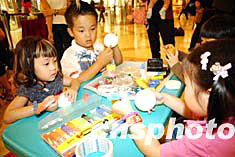 5月6日,香港海港城舉辦“母親節(jié)率先表愛(ài)意”活動(dòng),小朋友與母親一起制作徽章享受溫馨快樂(lè)時(shí)刻。作者:洪少葵