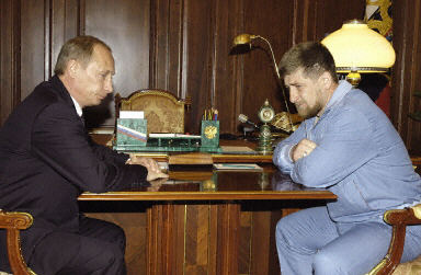 5月9日,俄羅斯總統(tǒng)普京在克里姆林宮接見車臣共和國遇難總統(tǒng)卡德羅夫的兒子。