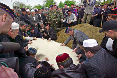 據(jù)報(bào)道,葬禮在卡德羅夫的故鄉(xiāng)車臣庫爾恰洛耶夫區(qū)岑托拉亞村舉行,北高加索一些地區(qū)的領(lǐng)導(dǎo)人和數(shù)千名車臣居民當(dāng)天自發(fā)前往參加葬禮。一大清早,格羅茲尼和車臣其它地區(qū)的居民乘坐數(shù)百輛小汽車和公共汽車前往卡德羅夫的故鄉(xiāng),同卡德羅夫作最后告別。在同一天遭遇爆炸身亡的其他人士的葬禮也將在各自的家鄉(xiāng)舉行。其中包括車臣國務(wù)委員會腦庫塞·伊薩耶夫。