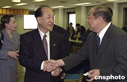 全國人大華僑委員會訪日團一行五月十一日在東京與旅日僑界人士座談,其熱點匯集在為眾多新老華僑所共同關(guān)注的子女華文教育問題。圖為率團訪日的陳光毅主任向橫濱山手中華學(xué)校校長潘民生詢問相關(guān)情況。作者:王健