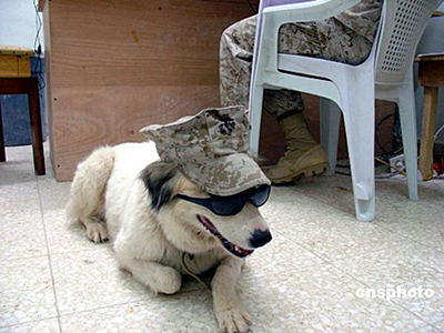 駐伊美軍士兵生活無聊,有些人只好以小狗相伴來打發(fā)時(shí)光。Ic/cnsphoto 攝