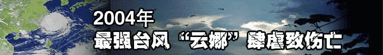 二○○四年第十四號臺風(fēng)“云娜”于八月十二日晚間八時許在浙江臺州溫嶺石塘鎮(zhèn)登陸。這是這一年以來四個在中國沿海登陸的熱帶風(fēng)暴中強(qiáng)度最強(qiáng)的一個,也是自一九九七年以來對浙江影響最嚴(yán)重的臺風(fēng)。截至登陸當(dāng)晚二
