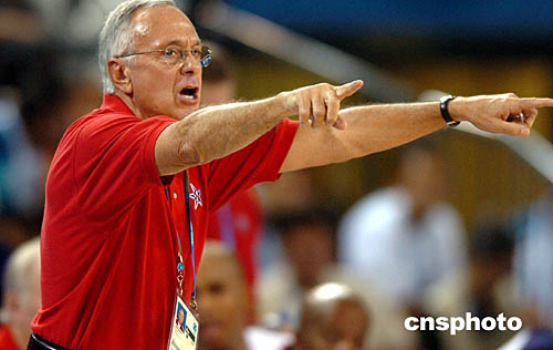 在當?shù)貢r間8月19日舉行的美國對澳大利亞籃球賽中,美國隊主教練拉里-布朗現(xiàn)場指揮球隊最后勝出。