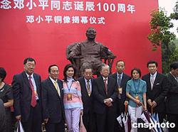 來自五大洲三十一個國家的百余名海外華僑華人,今天上午在雨中參觀“小平故里”紀念園。在新近揭幕的鄧小平銅像前,僑領們興致勃勃,或打著傘或淋著雨,紛紛與面帶微笑、坐在藤椅上的小平銅像合影。