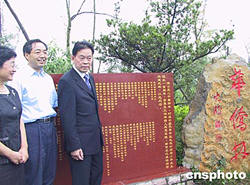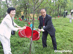今天上午,國務院僑辦副主任李海峰、四川省副省長黃小祥和僑領代表為“華僑林”留芳碑揭彩!叭A僑林”占地一百二十畝,建設資金三百萬元人民幣,由百名僑領每人捐資三千五百美元修建。“華僑林”內喬木挺拔、翠竹蔥籠,花草飄香。