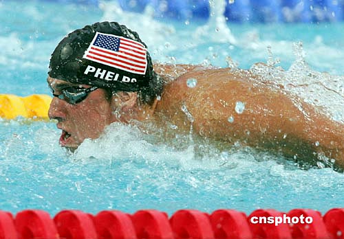中新社雅典八月二十日電 雅典奧運(yùn)會(huì)游泳項(xiàng)目二十日進(jìn)入第七個(gè)比賽日。在男子一百米蝶泳中,美國(guó)泳池天才少年菲爾普斯以五十一秒二五的成績(jī)?cè)倌靡幻督鹋,這也是他在本屆奧運(yùn)會(huì)泳池中獲得的第五枚金牌。