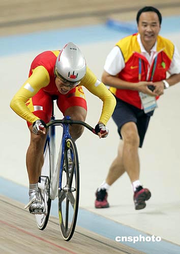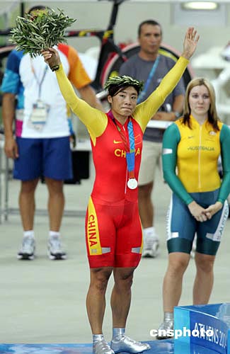 當?shù)貢r間八月二十日下午,在雅典奧運會女子自行車五百米計時賽中,世界紀錄保持者江永華以微弱差距惜敗澳大利亞選手MEARES,獲得銀牌。中新社記者:毛建軍