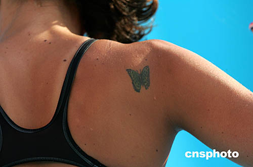 圖為法國(guó)17歲小將梅奧杜背部的蝴蝶刺青。