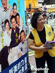 為迎接9.12香港立法會的選舉,香港街頭隨處可見醒目的參選標語海報。圖為香港民建聯(lián)為參選立法會營造氣氛。作者:錢興強