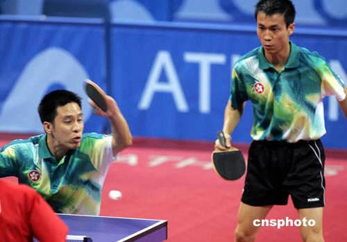 當(dāng)?shù)貢r間八月二十一日下午,香港選手李靜、高禮澤在男雙決賽中以1:4負于中國選手馬琳、陳玘,獲得本屆奧運會男子雙打亞軍。中新社記者:任晨鳴