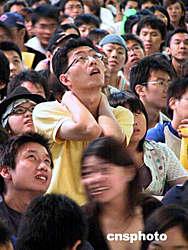 在臺(tái)北,京華城的地下廣場(chǎng)擠滿了球迷。從開始領(lǐng)先,到之后被日本隊(duì)追平比分,再到最后關(guān)鍵延長(zhǎng)賽中一球落敗,球迷沒有錯(cuò)過任何關(guān)鍵畫面,心情隨著比分起伏。
