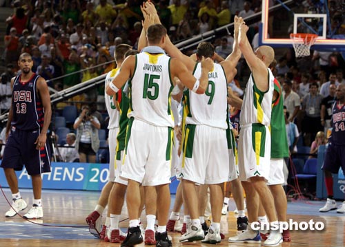 中新社雅典八月二十一日電 繼雅典奧運首場小組賽被波多黎各擊潰后,美國夢六隊今天再度落敗。立陶宛憑借其神準(zhǔn)的三分球以九十四比九十戰(zhàn)勝美國隊,這也使美國男籃遭遇到其奧運史上的第四場失利。