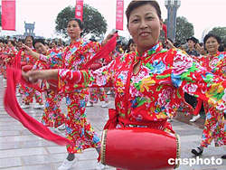 廣安故里八月二十二日隆重舉行鄧小平誕辰百年紀(jì)念活動(dòng)。圖為市民在思源廣場跳腰鼓舞。作者:王辛莉