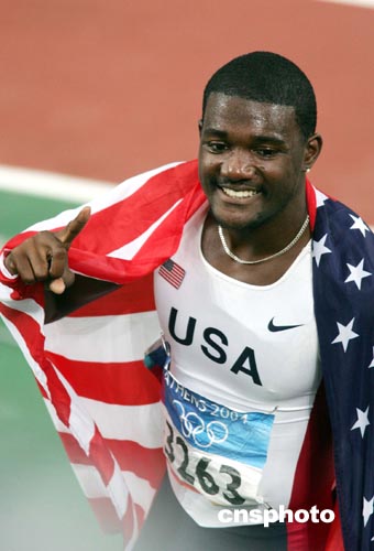 當(dāng)?shù)貢r間八月二十二日晚,雅典奧運(yùn)田徑百米飛人大戰(zhàn)以美國新生代的勝出而告終,二十二歲的美國小將加特林以9秒85的成績勇奪金牌。中新社記者:毛建軍