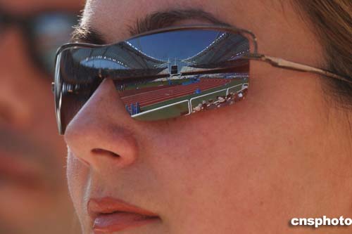 墨鏡中映射出的是雅典奧林匹克運動場田徑賽區(qū)。
