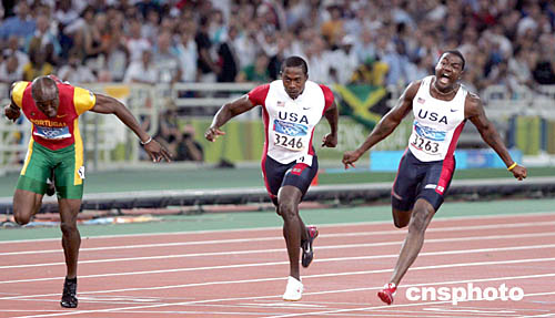 圖為在男女100米決賽中,選手們最后沖線的鏡頭。